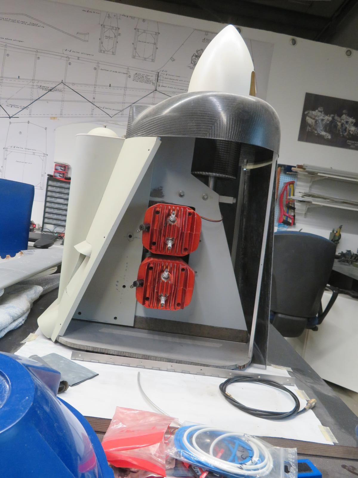 Der Rumpf wird eine kombinierte Glasfaserverbundwerkstoff und Rohrkonstruktion sein. Der vordere Teil wird aus Edelstahlrohr gebaut und der hintere Teil besteht aus Kohlerohren.